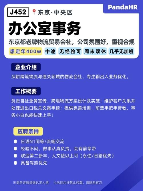 #日本就职 #东京招聘 #日本转职 #中途转职 #物流事务 #文职招聘 #跨境物流 #日本事务助理