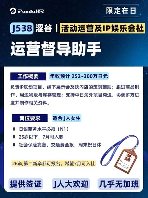 【J538】运营督导助手|252~300w|新卒可|东京涩谷